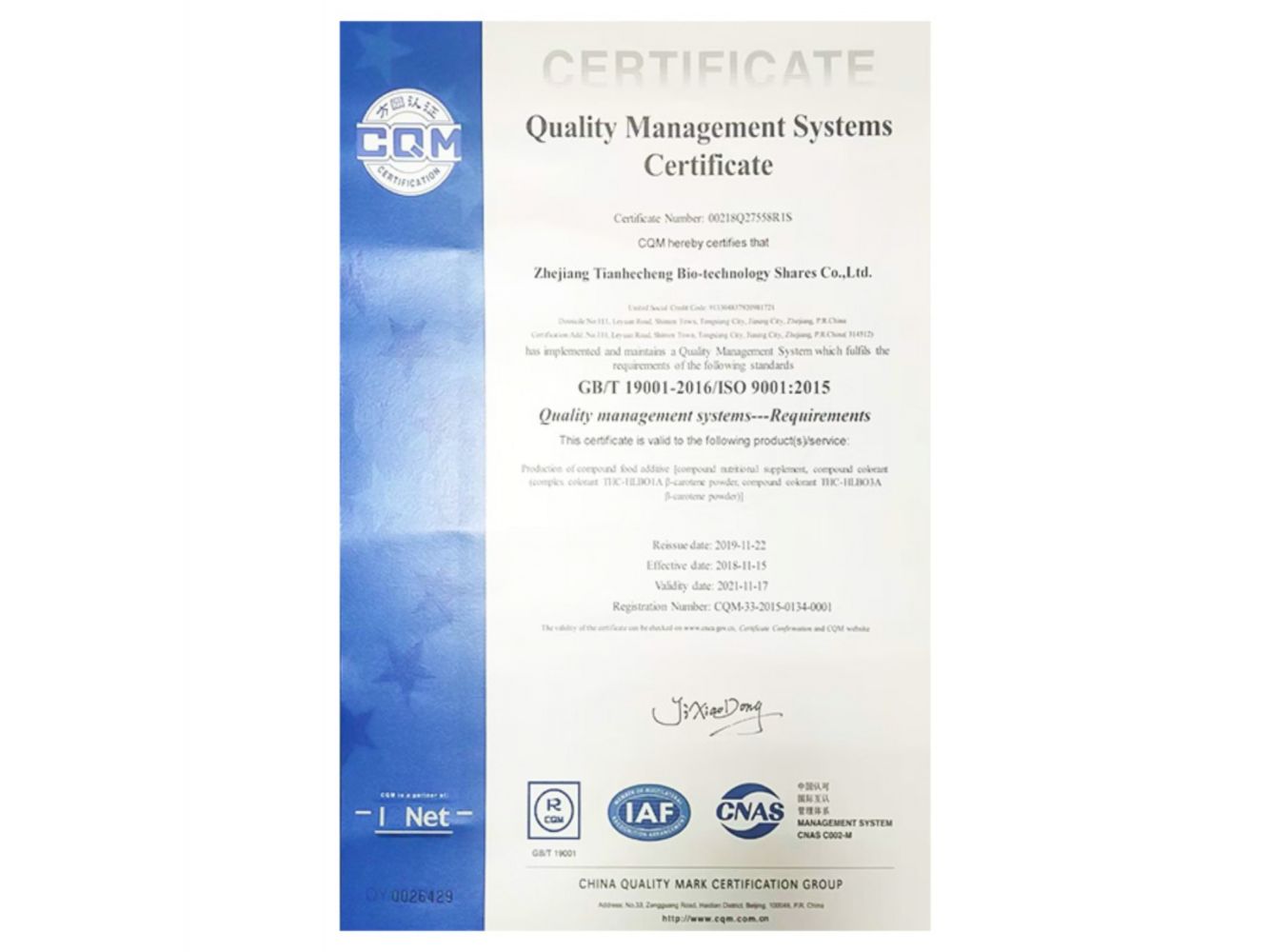 Zhejiang Tianhecheng Bio-technology Shares Co., Ltd.